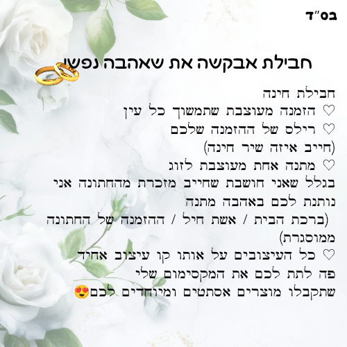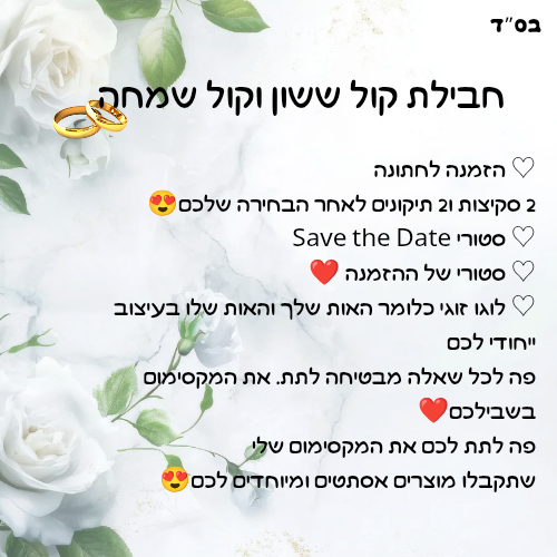 העיצוב גרפי מלווה אותי מאז ימי בית הספר – מאז שאני זוכרת את עצמי, אני יוצרת, מנסה, וחיה את העולם הזה עם תשוקה אמיתית. בעיני, עיצוב הוא הרבה יותר מאסתטיקה – הוא דרך להנציח רגעים חשובים, ליצור מזכרת מהממת לאירועים ולהעביר את האישיות והסיפור של כל זוג או עסק.